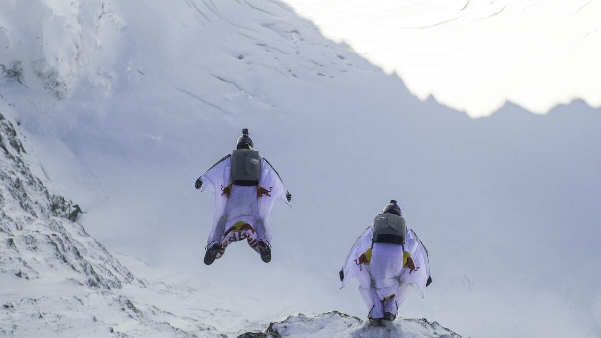 Check out These Crazy Dudes, Jumping of a Perfectly Good Mountain!