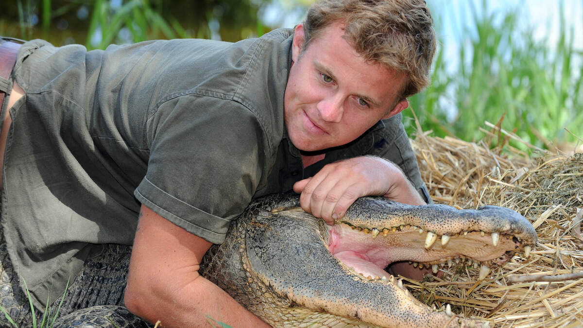 A dad yells "we've got trouble in here" to call for assistance when an alligator attacks its handler in front of a children's birthday party then quickly jumps in to help restrain it himself.